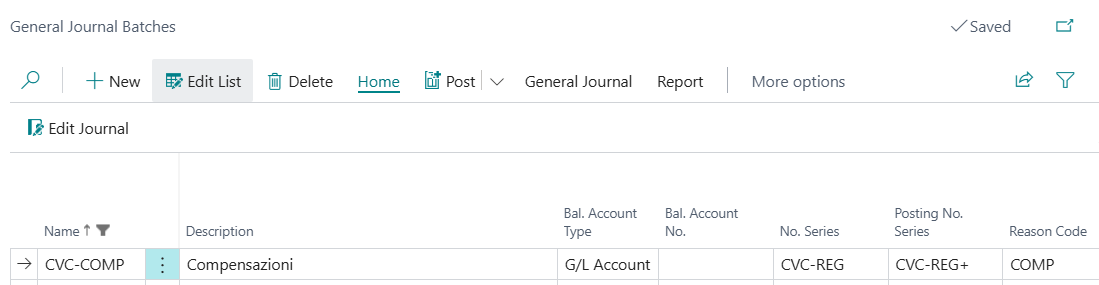 In the Journal intended for compensation, it is recommended to create a specific batch for compensation entries and assign the temporary and/or final number series.