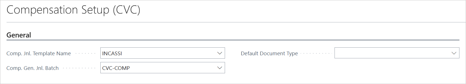 | Comp. Gen. Jnl Batch | Defines the Batch to be used for compensation postings. |