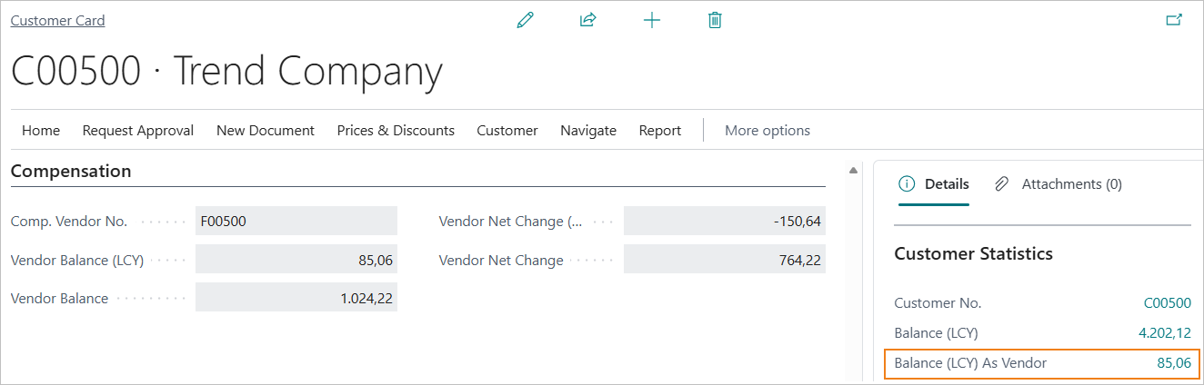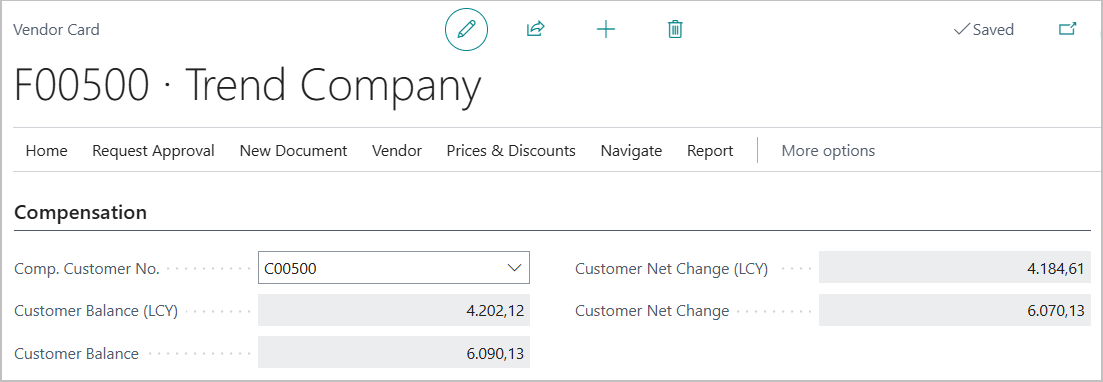 The Customer/Vendor link can be set using the “Comp. Vendor No.” field on the customer card (Compensation section) or, alternatively, by filling in the “Comp. Customer No”. field on the vendor card.