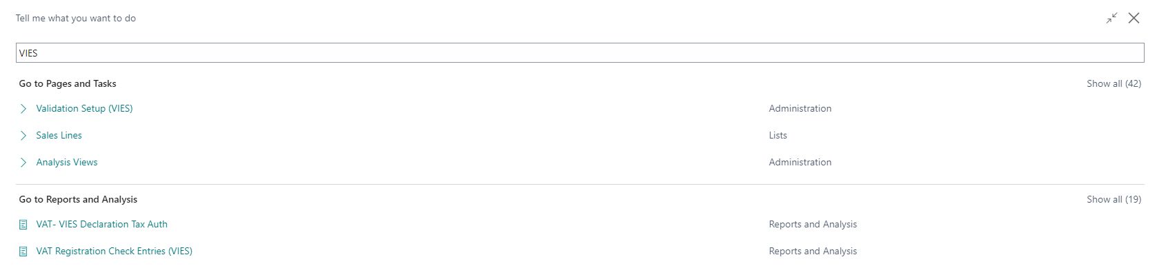 Press ALT + Q and digit “VIES” for a list of the features involved: