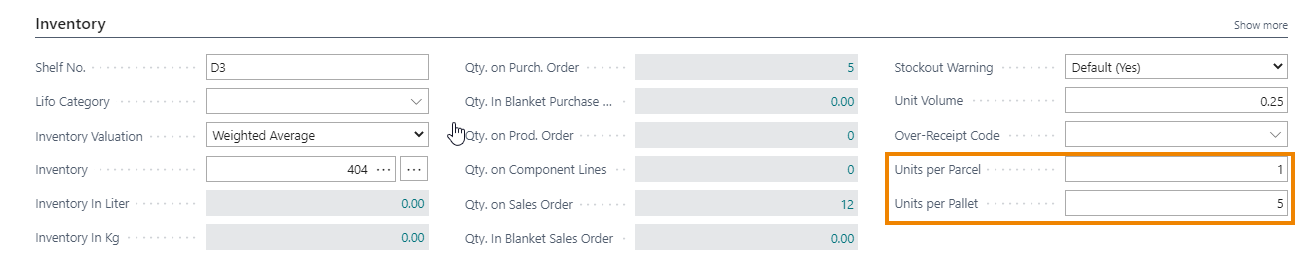 On the Item card page there are two fields in the Warehouse Tab: