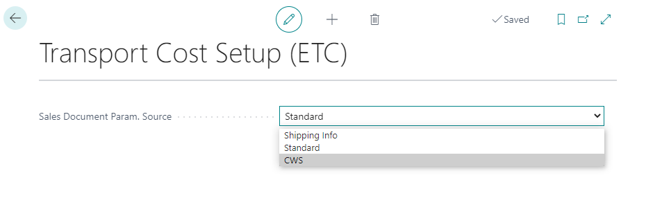 - Document Param. Source basis for calculating transport costs, the permitted values are: Shipping info, *Standard, CWS.