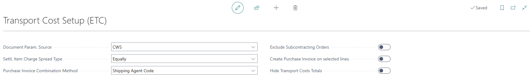 The transport cost setup allows to define what types of documents we want to consider in our calculations and any spread of the assigned charges.