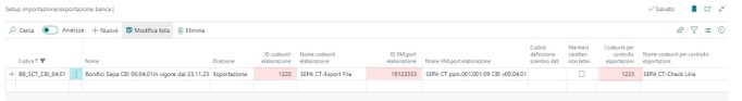 L’XMLport da impostare nel campo “ID XMLport elaborazione” è il 18123333 – “SEPA CT pain.001.001.09 CBI v00.04.01”