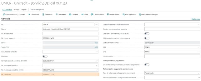 Si suggerisce, quindi, di valorizzare il campo “CUC” presente sulla scheda conto corrente bancario per non