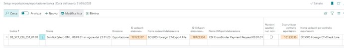 Nel setup importazione\esportazione banca dovrà essere creato un nuovo codice di formato esportazione.