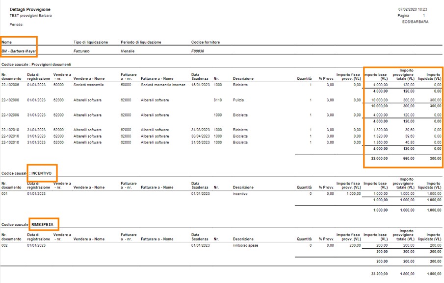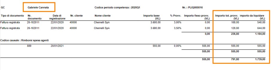 Questo report presenta un elenco delle provvigioni maturate in un determinato periodo, con l’importo liquidato.