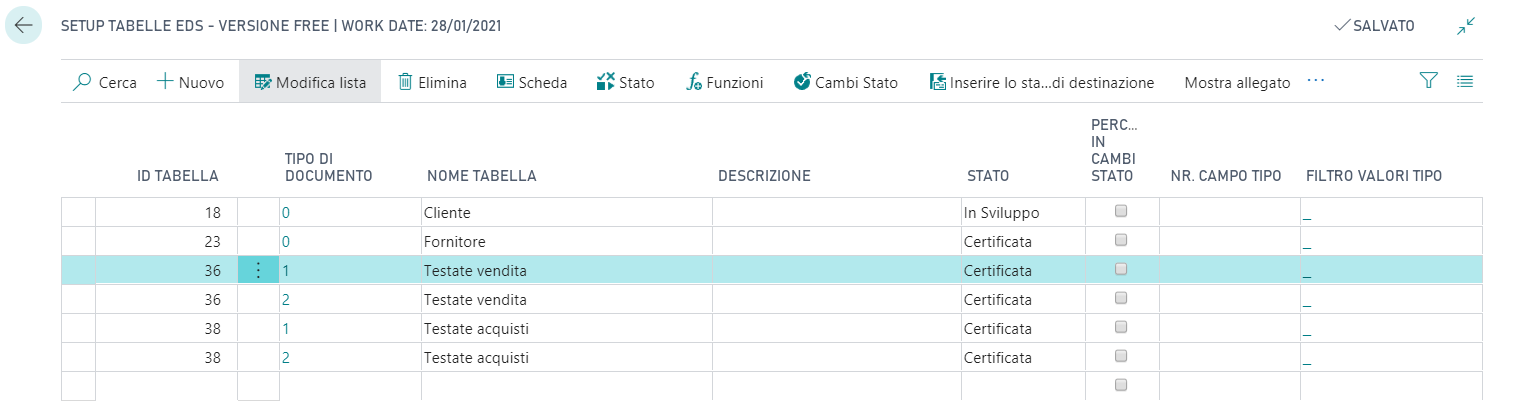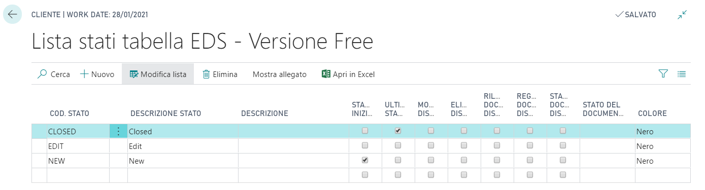 Ad ogni elemento dell’entità può essere associato uno stato diverso, partendo da uno stato iniziale. Aprire il Setup tabelle EDS: