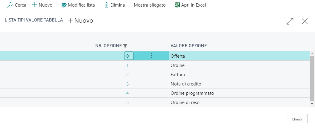 | Nr. campo tipo | All’interno di una tabella è possibile gestire un campo specifico |