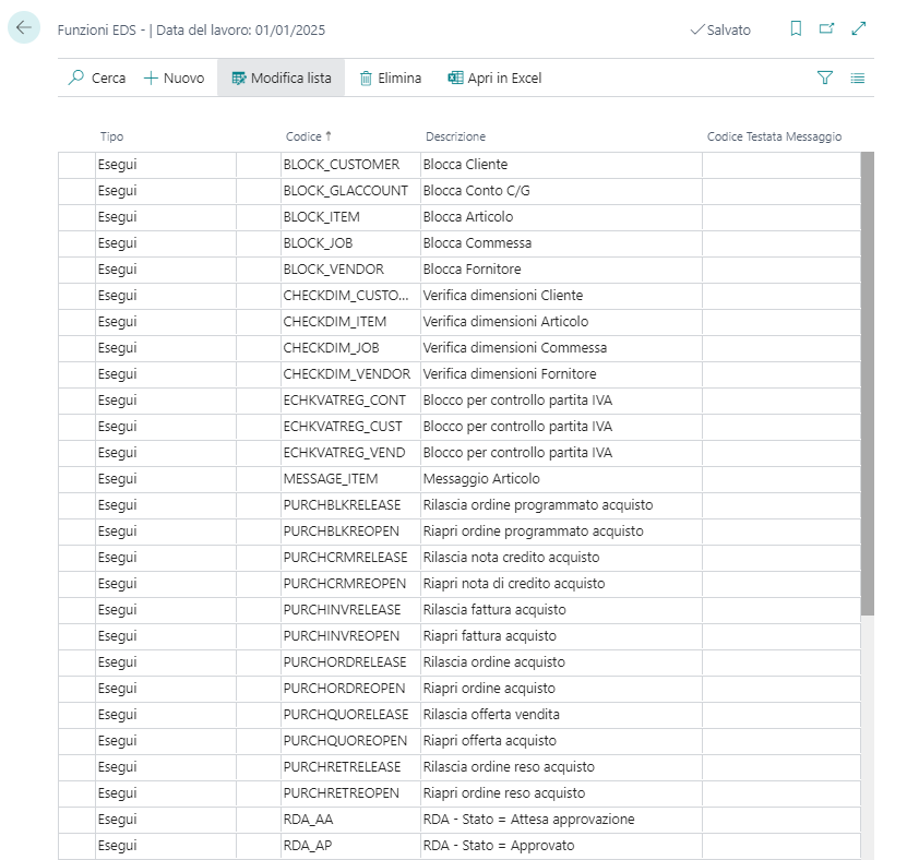 | 1 | Premere ALT+Q->“Setup tabelle EDS/G |