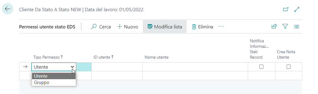 | Da stato | Lo stato iniziale va impostato come Blank->Nuovo |