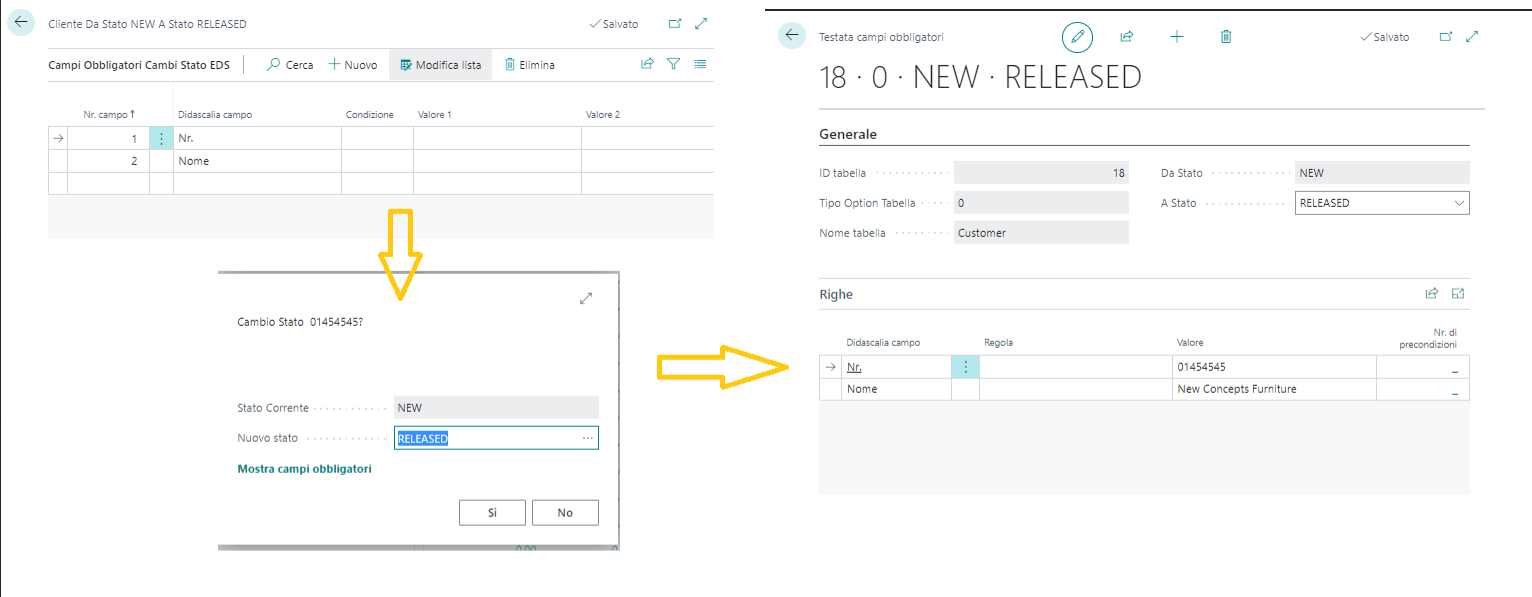Si può stabilire, ad esempio, che un record passi da “Nuovo” a “Certificato” e infine a “Obsoleto”.
