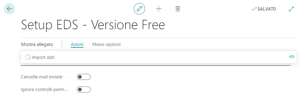 | Import Dati | Tale funzione viene applicata solo durante upgrade da precedenti versioni di Data Security built in C\AL. Esportare i dati da un vecchio ambiente utilizzando una Json export function in RapidStart service Cliccare Import Dati per caricare il file json esportato all’interno del nuovo ambiente Business Central e inserire nuovi record |
