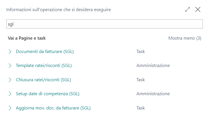 Premere ALT + Q e digitare “SGL” per vedere un elenco delle funzionalità coinvolte: