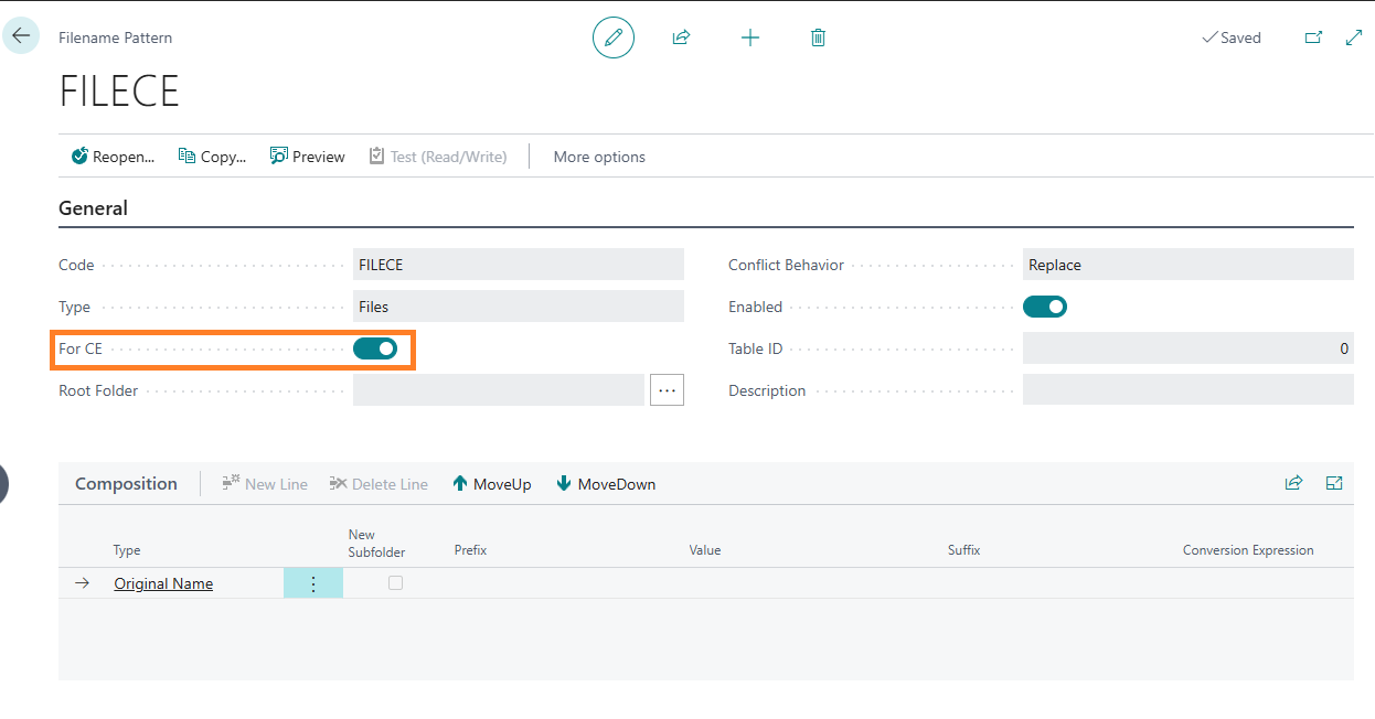 - Il CE Folder Path costituisce la radice del pattern in BC quando si usa lo Storage “CE”; non rimuoverlo né cambiarne l’ordine.