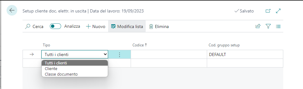 Nel “setup clienti” è possibile abbinare il setup precedentemente impostato a tutti i clienti, ad un singolo cliente o ad una singola classe documento (se è installata l’app Classi Documento
