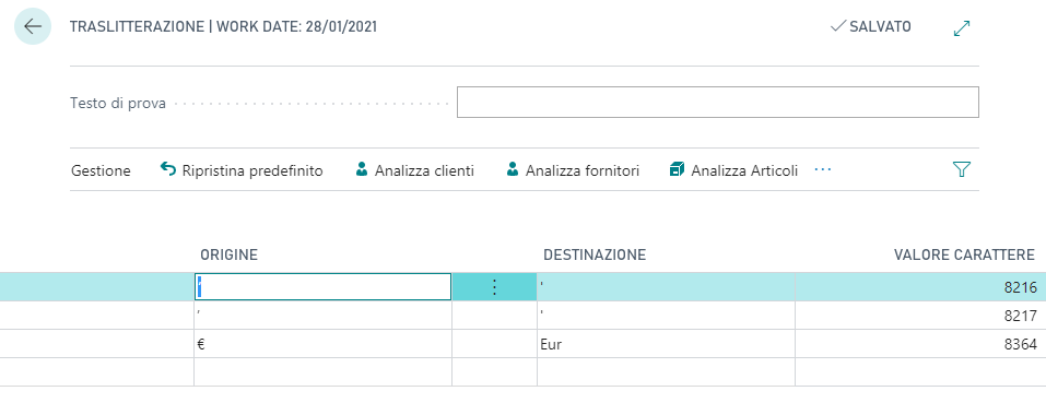 Da Elenco di traslitterazione è possibile valorizzare simboli/caratteri presenti nei file .xml in modo che il sistema li riconosca. (Traslitterare=Trascrivere una parola, una frase, un testo da un sistema alfabetico a un altro)