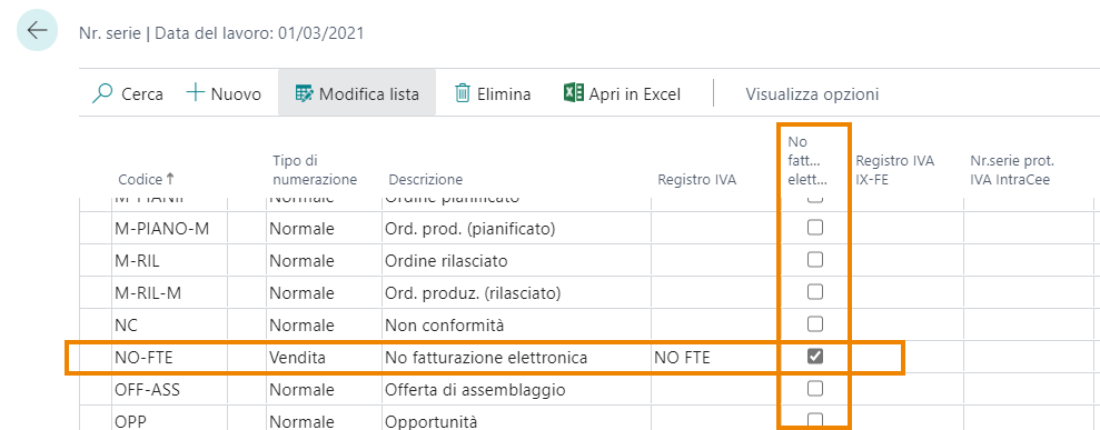 No fatturazione elettronica su Nr. serie