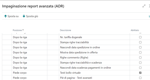 Successivamente attivare il flag in corrispondenza di "Testi bollo virtuale" nel setup report (ADR):