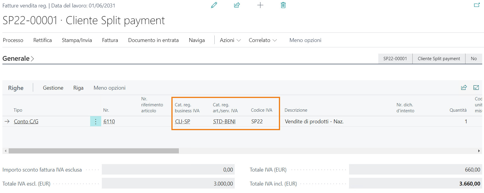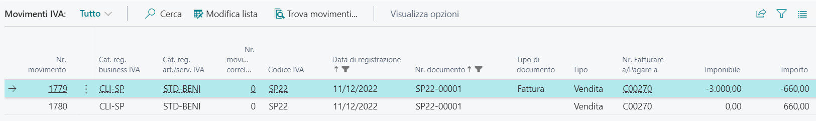Registrando il documento di vendita con la combinazione di setup definita, il sistema automaticamente si occupa di generare il giroconto dell’IVA, IVA che sarà versata all’Erario direttamente dal cliente (cessionario/committente):