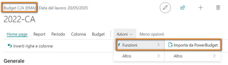 È stata introdotta la possibilità di importare il Budget C/A da uno specifico budget generato all’interno dell’applicazione Power Budget.
