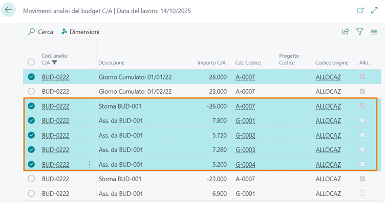 | Budget | Permette l’allocazione di dati di budget presenti nel “Budget C/A” |