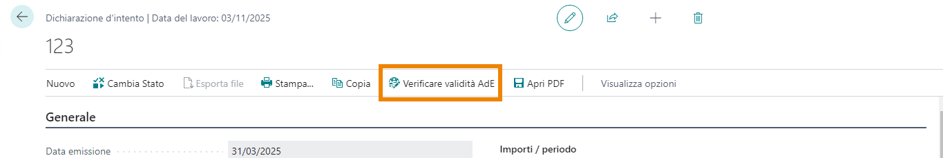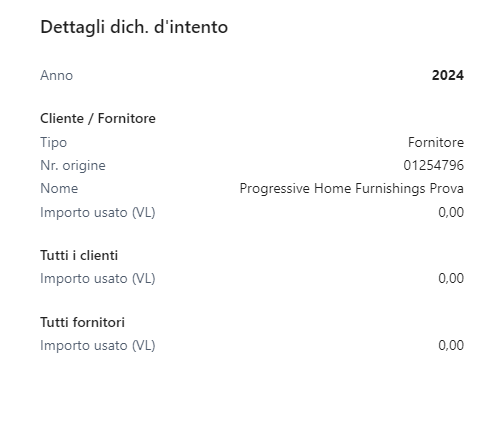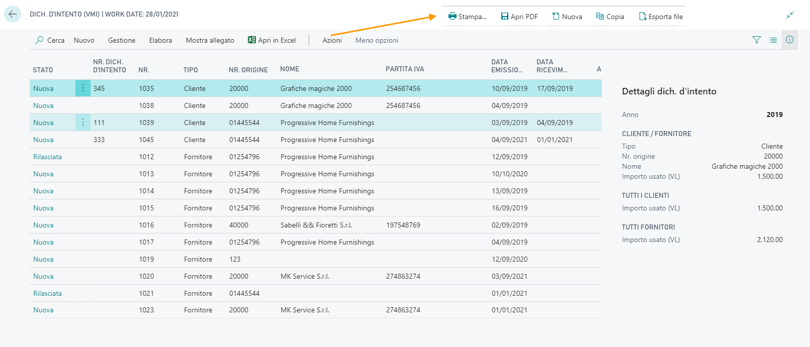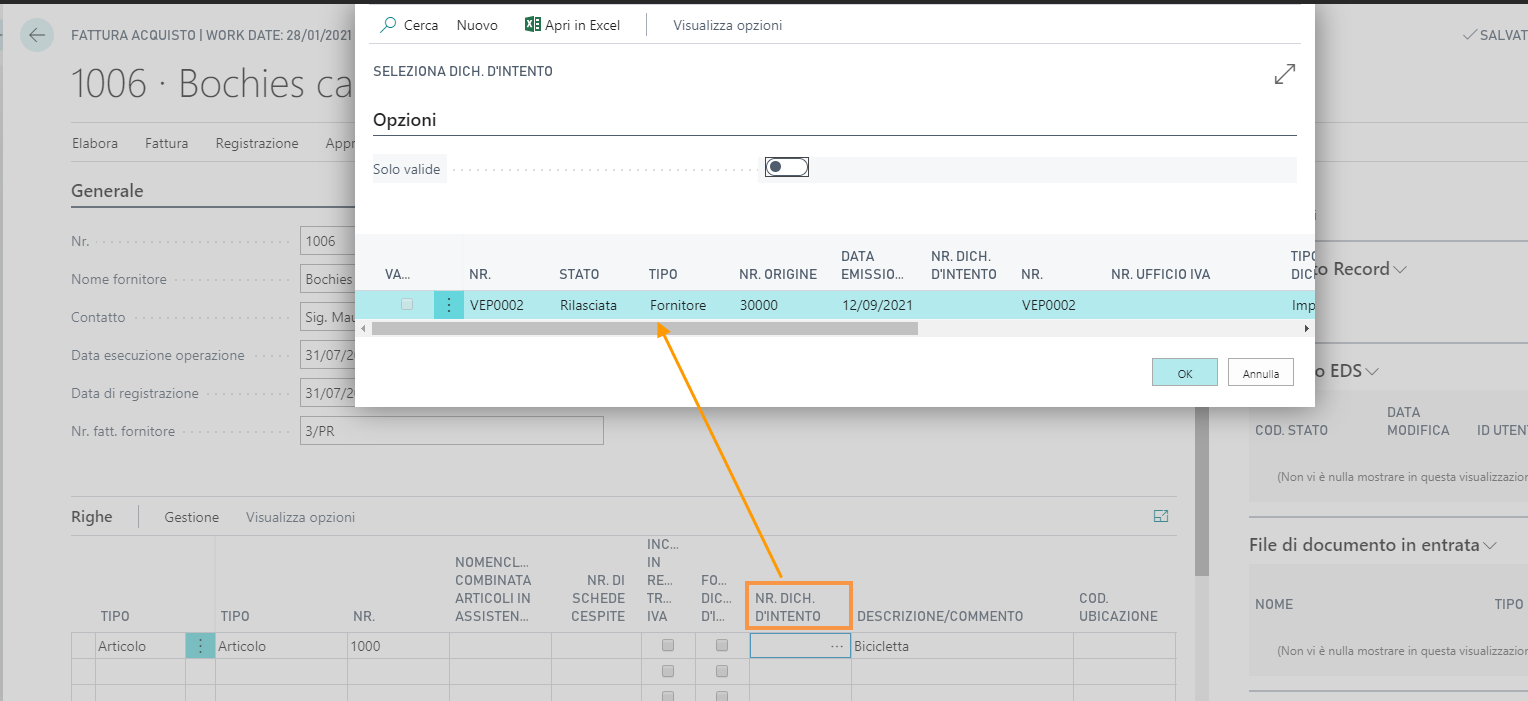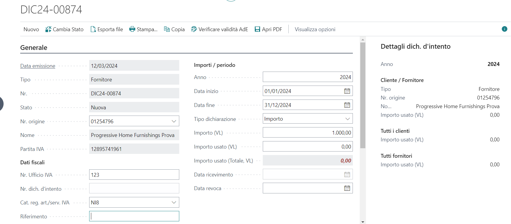 Nella Factbox sulla destra si possono vedere i dettagli della Dichiarazione di Intento. !![]() |