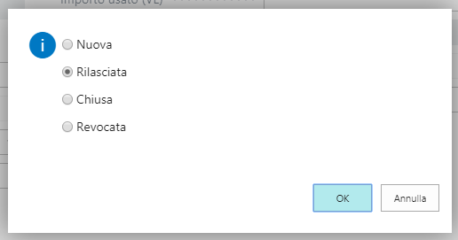 | Importo usato (Totale, VL) | Totale importo utilizzato (importo usato (VL) + importo (VL)) |