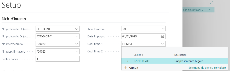 Tornando alla pagina di Setup, nel campo Cod. Firma è ora possibile selezionare tra le firme disponbili