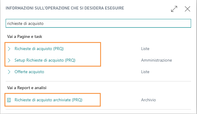 Gestione Role Center delle richieste di acquisto