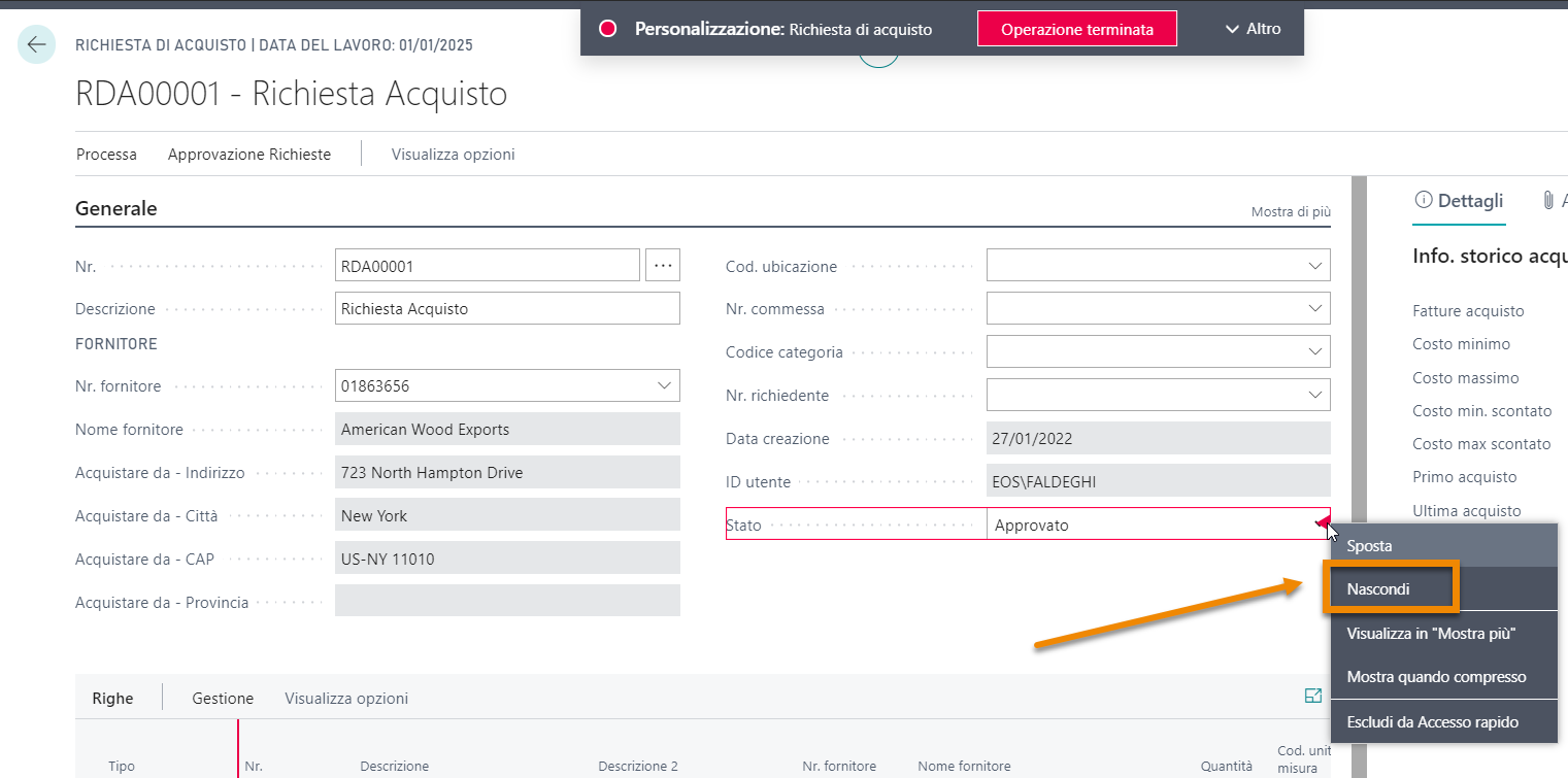 - E’ consigliato, ma non necessario nascondere o rendere NO EDIT il campo “Status” sulle PRQ utilizzando Design o custom extension: