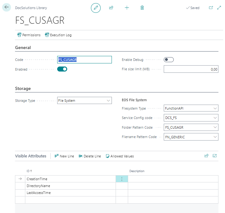 Setup Tabelle DocSolutions (DCS)
