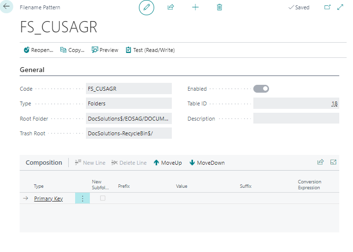 | Tipo | Indica il Tipo di Linea. Può essere: Testo, Campo, Chiave Primaria, Serie No., Nome Tabella, No. Tabella, Nome Originale Esempio: ![]() Se scrivi: ![]() i file caricati verranno salvati in Documenti \ DocSolutions, in una ulteriore cartella “Cliente”, in una ulteriore sottocartella “No. Cliente”. |