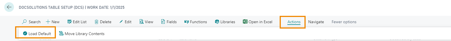 Cercare “Setup tabelle DocSolutions (DCS)”, e caricare le impostazioni di default Azioni -> Carica Default: