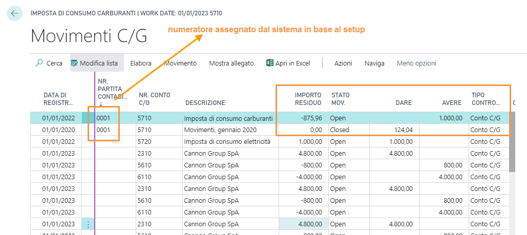 Per verificare il collegamento aprire i Movimenti C/G: