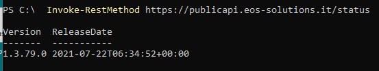 | Invoke-RestMethod https://publicapi.eos-solutions.it/status |