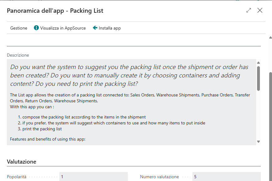 Se non è già installata, aprire Business Central e cercare (ALT+Q) “App Microsoft Appsource”.