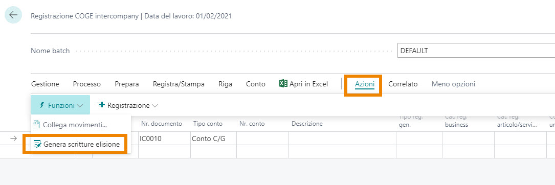 nelle Registrazioni COGE Intercompany è presente l’apposita funzione “Genera scritture elisione”: