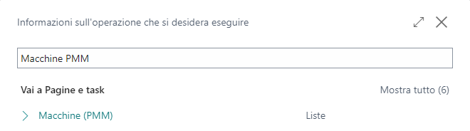 È possibile gestire le informazioni delle macchine tramite la pagina “Macchine (PMM)".