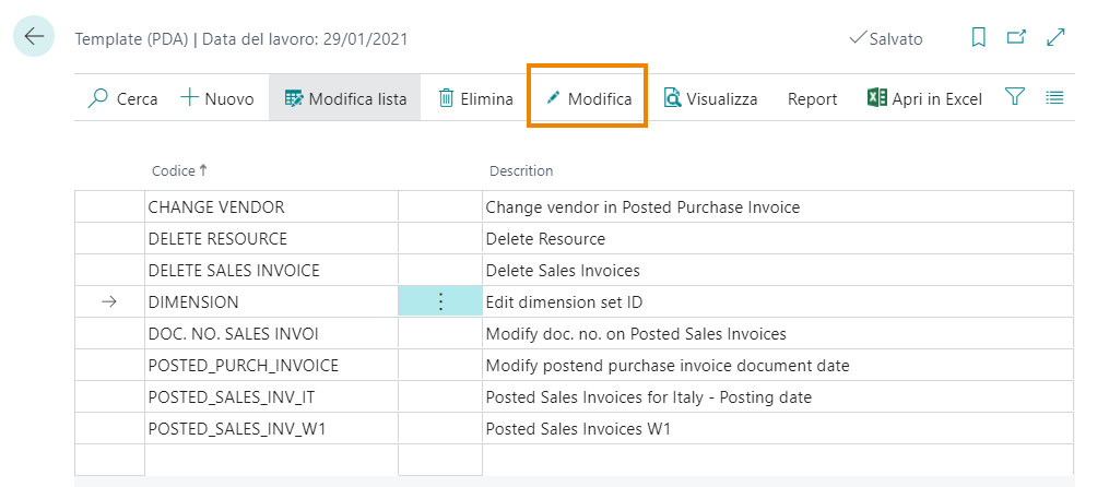 Selezionando un template, da Modifica è possibile definire le tabelle che si desiderano modificare ed i relativi campi: