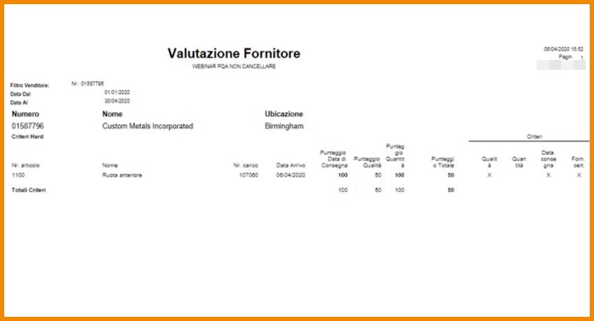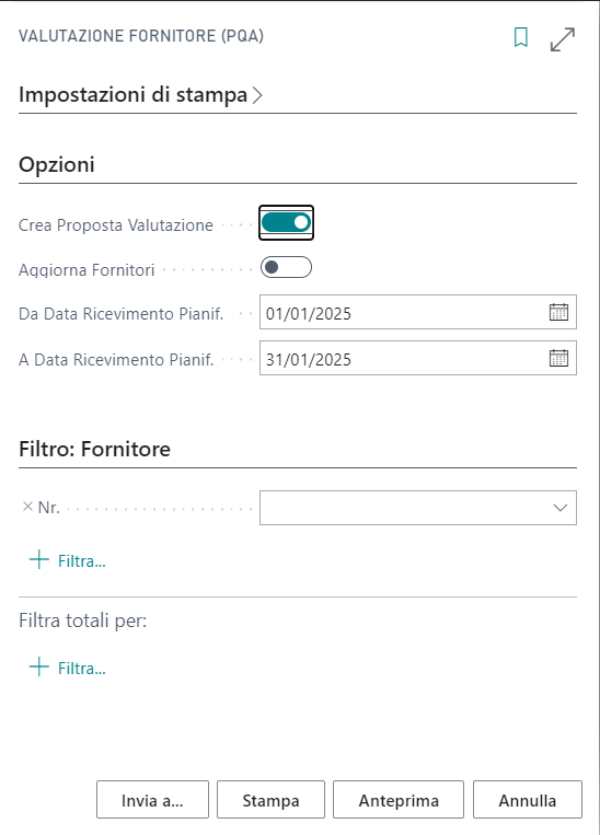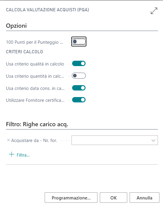 | Valutazione Fornitore (PQA) | Calcola il punteggio specifico per fornitore |