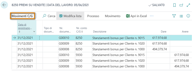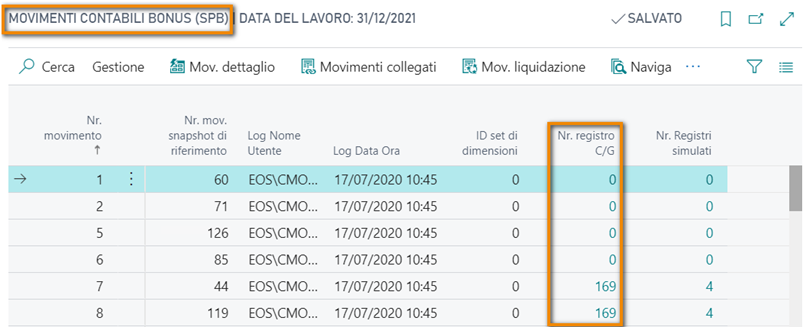 ll movimento contabile bonus viene marcato con il campo “Nr. registro C/G” e non viene più processato dalla procedura eseguita in C/G.