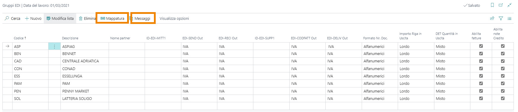 Dal menu in alto è possibile aprire la page Mapping EDI.
